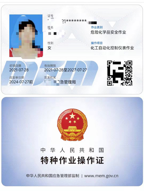 化工自動化控制儀表作業操作證;