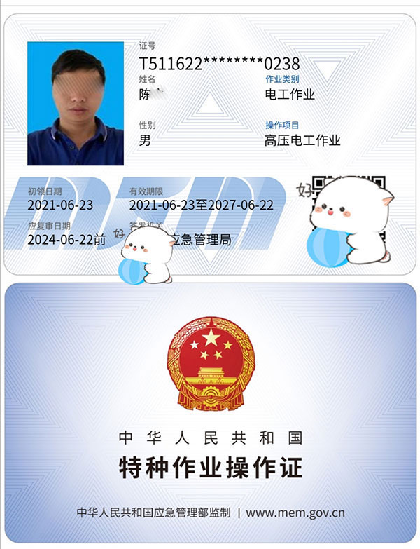 2,低壓電工證”,又稱“ IC 卡”、"上崗證”、”操作證”等。它由“安全生產監督