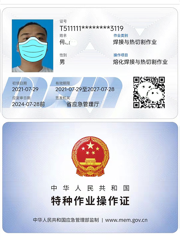 焊工特種作業操作證,全國通用,聯網可查,是焊工從業人員必備的有效證件,證件有效期是6年,3年到期需要年審,6年滿了則需要換證,不管是復審還是換證,都建議大家提前2-3個月申請,以免過期作廢。