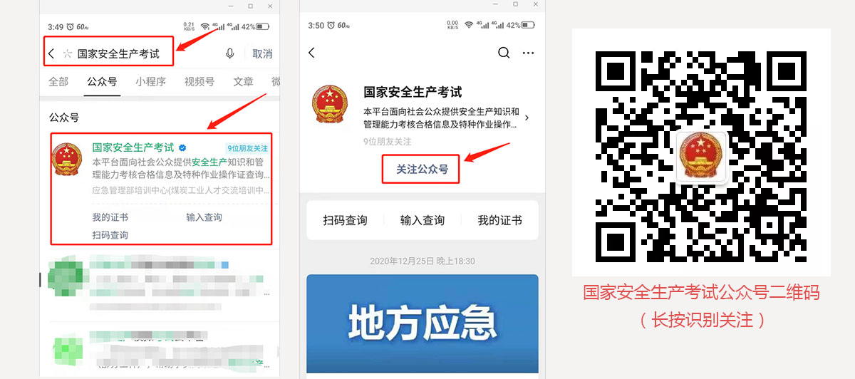 獲取新版證書的電子證書可通過微信公眾號(hào)“國(guó)家安全生產(chǎn)考試”或應(yīng)急管理部官網(wǎng)兩種方式查詢下載。