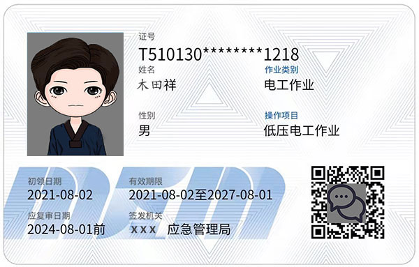 應急管理局,的小卡片也就是我們說的上崗證,無論是你要考低壓還是高壓都一定要安監局出的證!