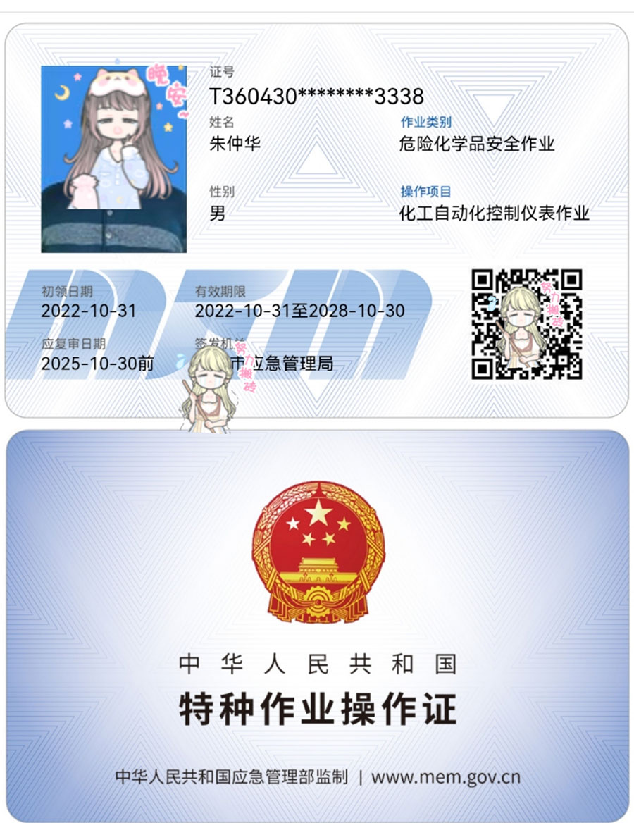 危險化學(xué)品操作證:危險化學(xué)品的生產(chǎn)、經(jīng)營、儲存、運輸、使用以及處置廢棄危化品活動的人員,必須接受有關(guān)法律、法規(guī)、規(guī)章和安全知識、專業(yè)技術(shù)、職業(yè)衛(wèi)生防護和應(yīng)急救援等知識的培訓(xùn),并經(jīng)考核合格,方可上崗作業(yè)。